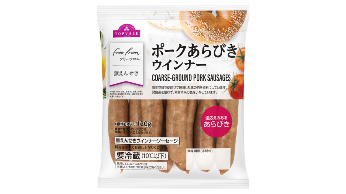 - トップバリュ:フリーフロムポークあらびきウインナー