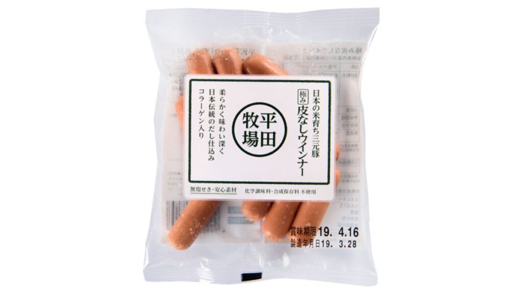 平田牧場の『日本の米育ち三元豚 極み皮なしウインナー』は、日本のお米を食べて育った三元豚を原料にしています。